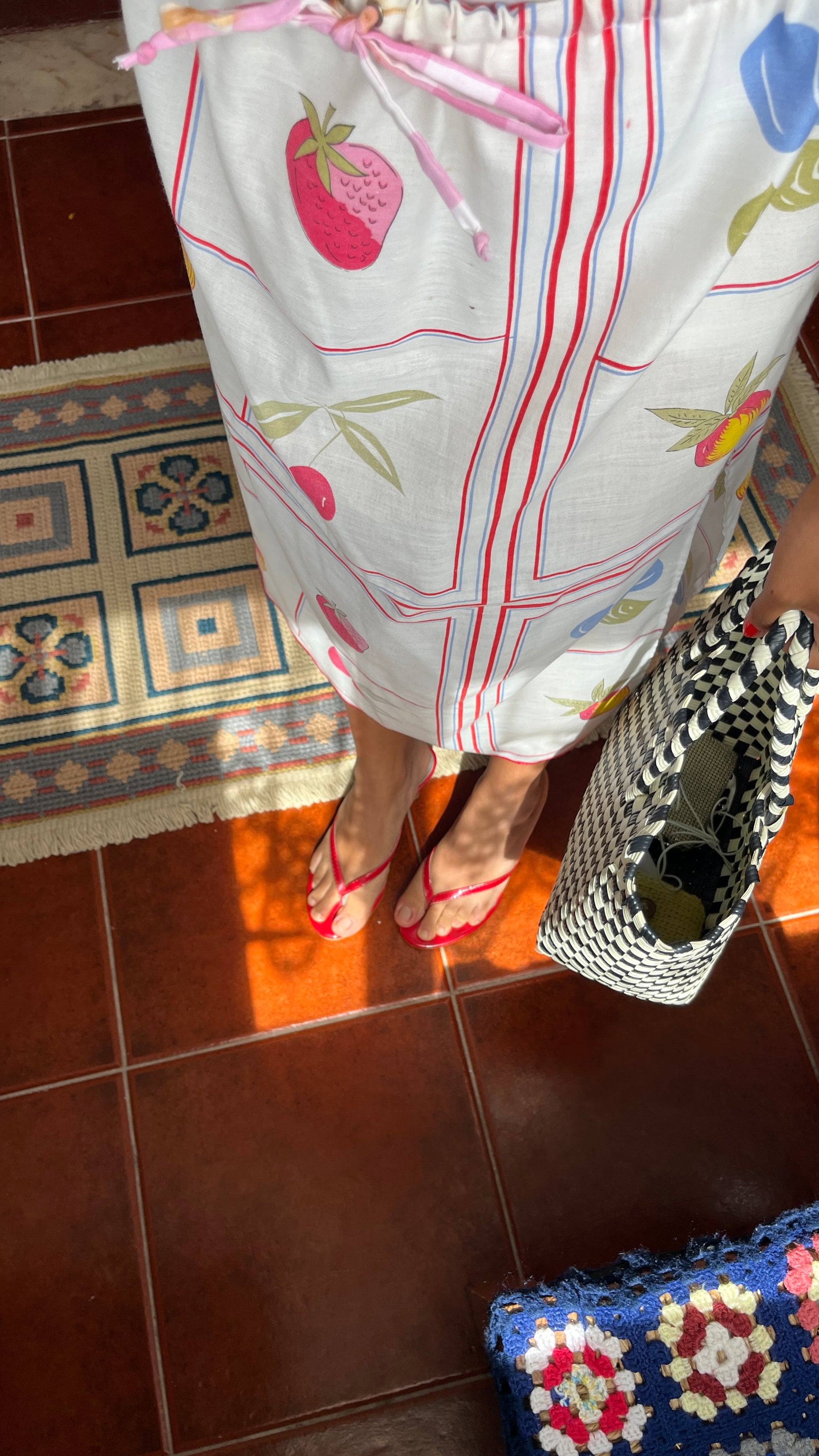 Please hand wash all items, as they are handmade, to help extend their life. Due to the nature of the materials and the artisanal process, slight imperfections may occur. When working with vintage and pre-loved fabrics, small repairs are sometimes made to to prevent waste. As a sustainable fashion brand, we embrace these details — imperfections that make each piece truly one of a kind.